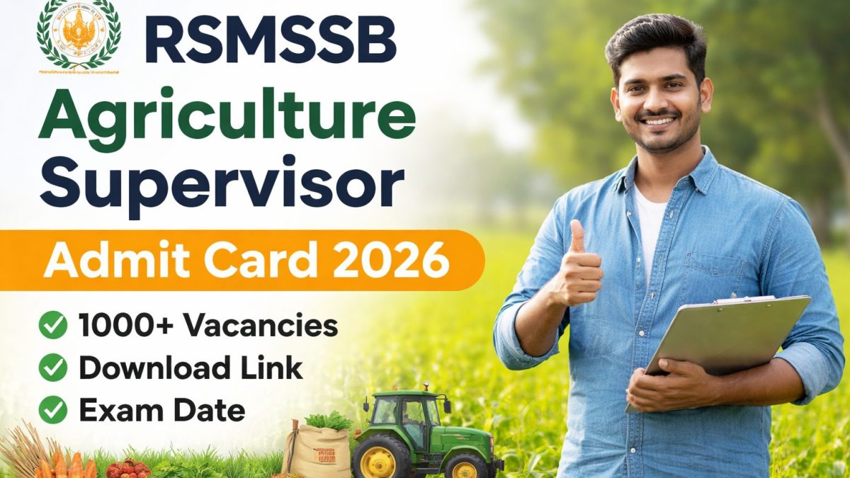 The RSMSSB Agriculture Supervisor Admit Card 2026 is now available for download, marking an important step in the recruitment process for over 1000 vacancies. Candidates should download their hall tickets immediately and verify all details carefully.